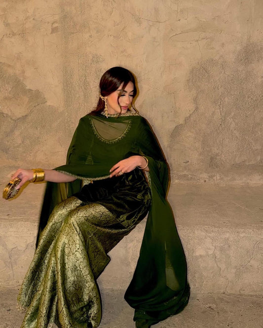 Aila Olive Velvet Shirt & Sharara
