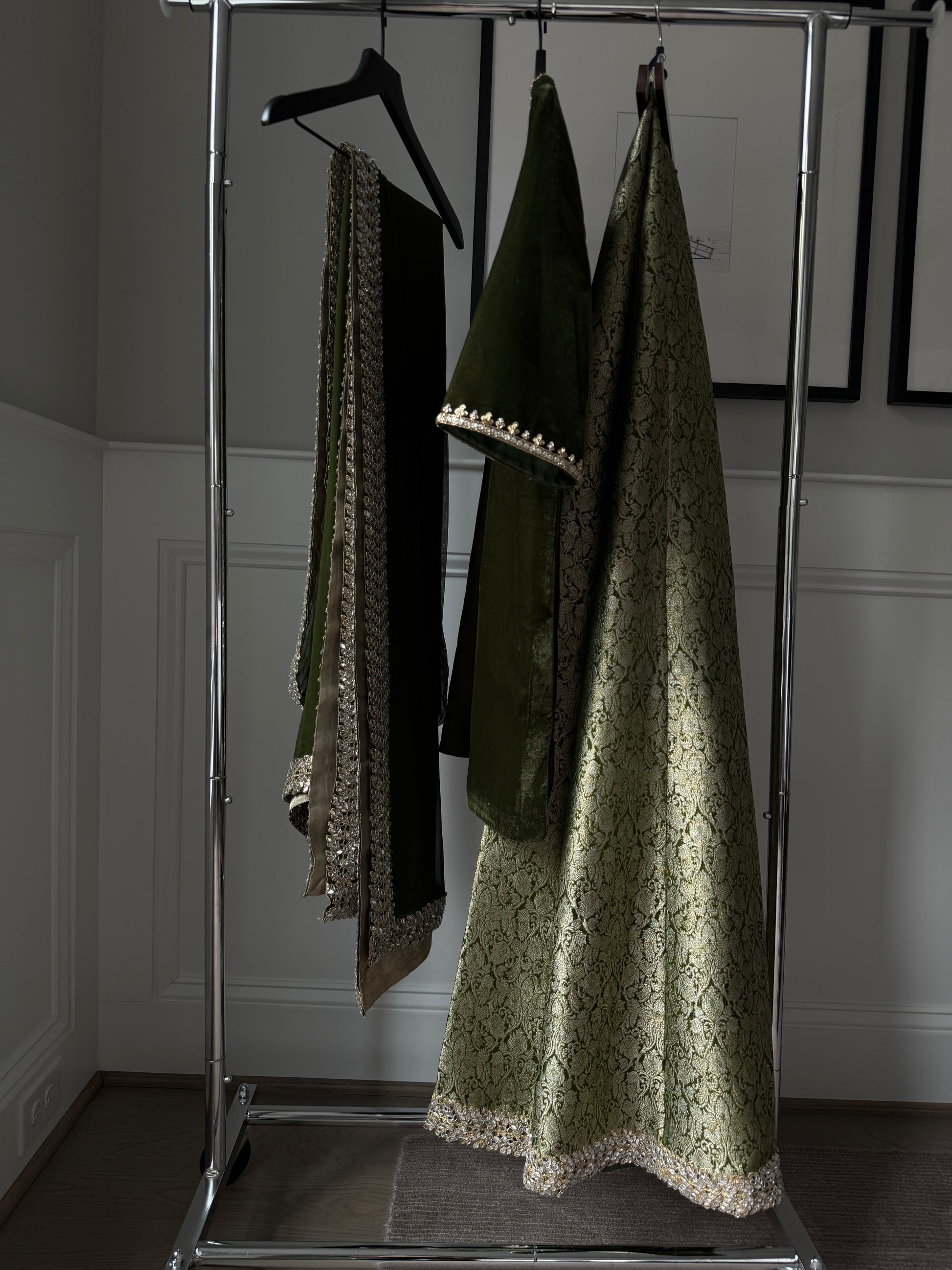 Due to the nature of jamawar, the motifs of the fabric may differ depending on supply; however, quality, color, and cut remain the same.